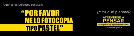 La campaña ATREVASE A PENSAR (http://www.eafit.edu.co/minisitios/)es una invitación a meditar sobre la corrupción en todas sus formas y manifestaciones, que desgraciadamente en los últimos meses en Colombia, ha invadido todos los espacios, que sin descanso todos los días los medios de comunicación destapan las cascadas de escándalos, que se califican de enormes, pero al otro día aparece otra mayor, que nos hace olvidar la de ayer.