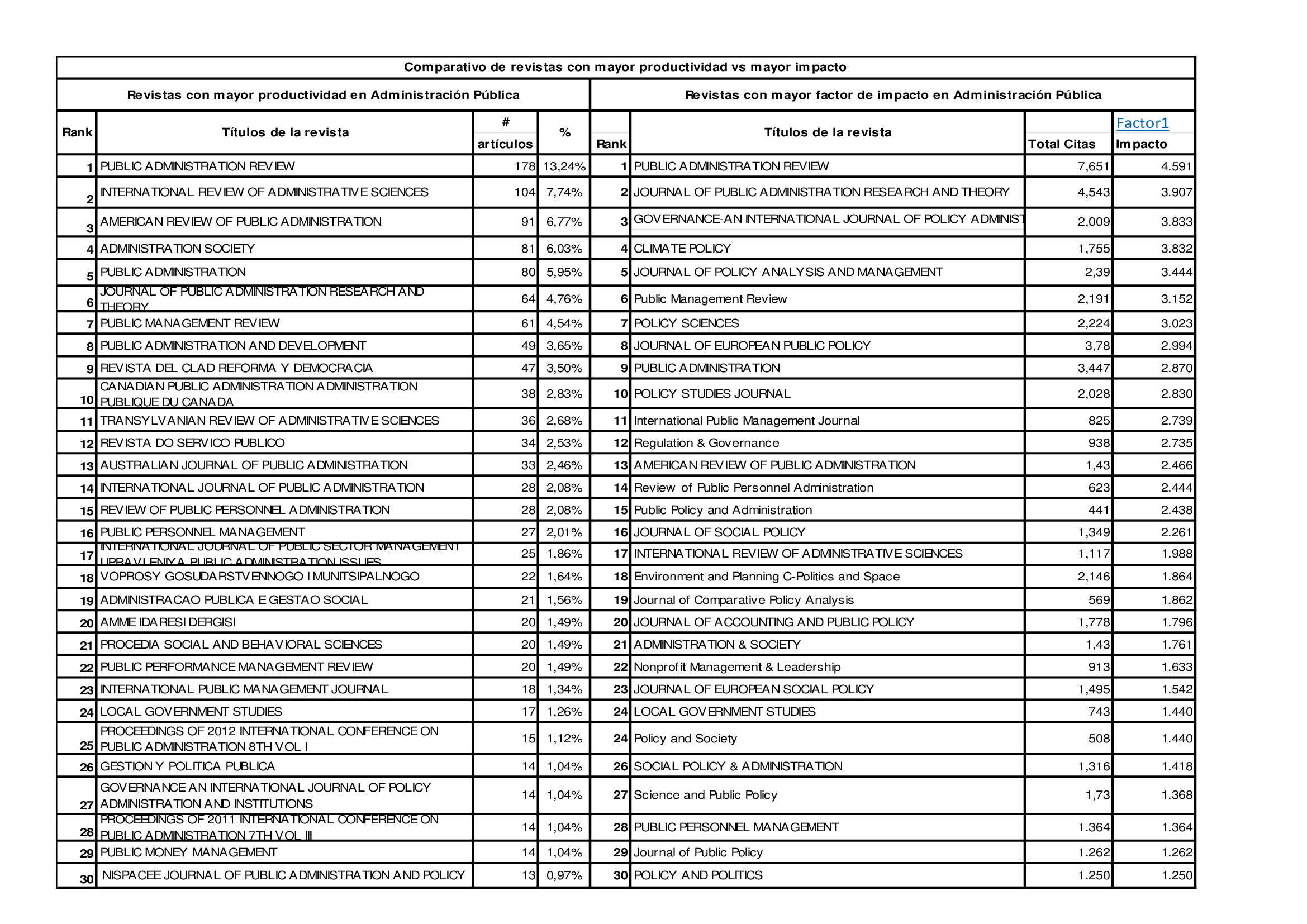 3.2. Revistas más productivas vs las de mayor impacto en Administración Pública